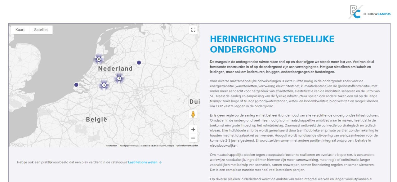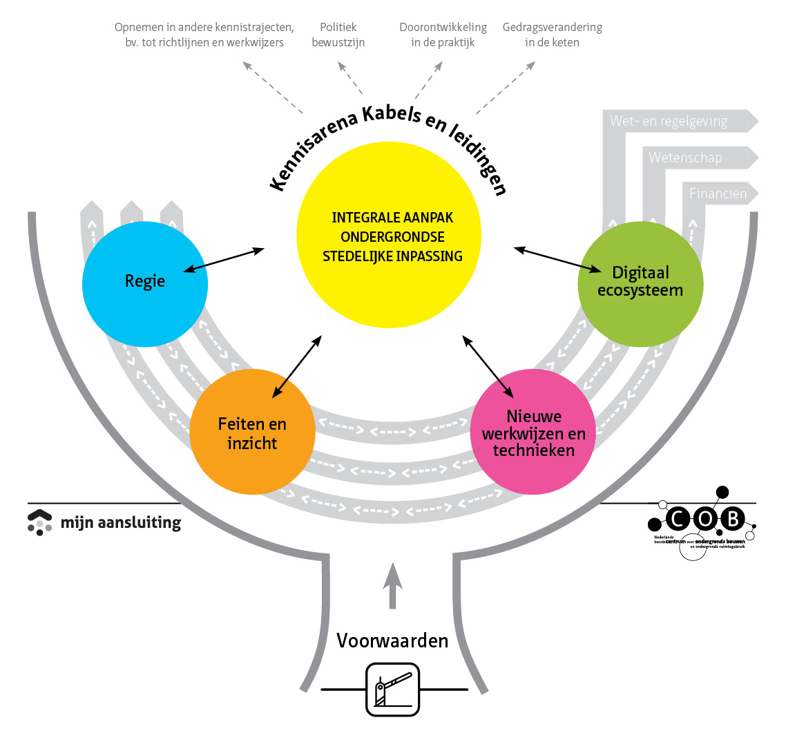 Hiermee wordt de branche stapsgewijs gestimuleerd en begeleid in multidisciplinair programmeren, ontwerpen en uitvoeren. Het resultaat van dit project is een eerste stap naar het uiteindelijke doel: een routekaart of handleiding, aangevuld met een bibliotheek met prototypen van bestaande oplossingen en praktische, bruikbare instrumenten. In eerste aanleg zijn gemeenten, netbeheerders voor energie, water, warmte, media en communicatie hierbij gebaat. In tweede aanleg ook waterschappen, provincies, wooncorporaties, bouwers en vastgoedbeheerders.