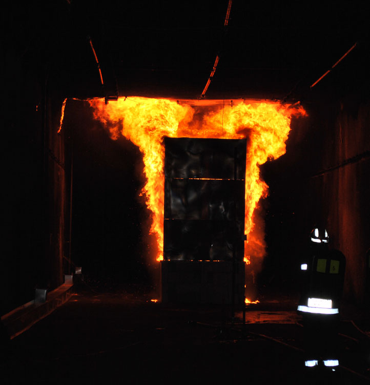 Leander: “Naar ons weten zijn er niet eerder op deze schaal brandproeven in een wegtunnel uitgevoerd met een sprinklersysteem in combinatie met ventilatie. Bij eerder uitgevoerde proeven (bijvoorbeeld blusproeven in het kader van UPTUN) was de brandlast en het resulterende brandvermogen veel kleiner dan bij onze proeven. In onze testserie bestond de brandlast steeds uit 228 pallets, deels afgeschermd door een stellage die de opbouw van een vrachtwagen representeerde. Watermistsystemen voor tunneltoepassingen worden wel op deze wijze beproefd, zoals het systeem dat wordt toegepast in de Roertunnel.”