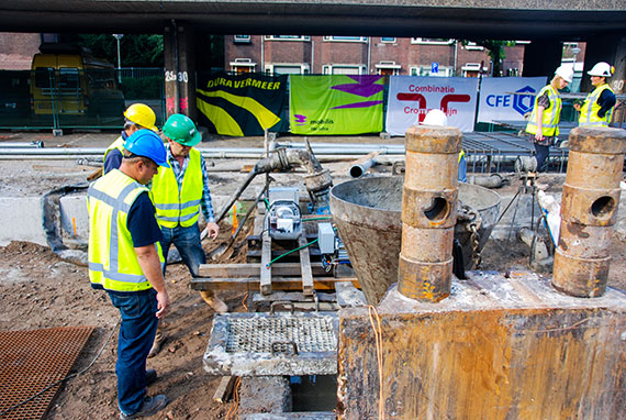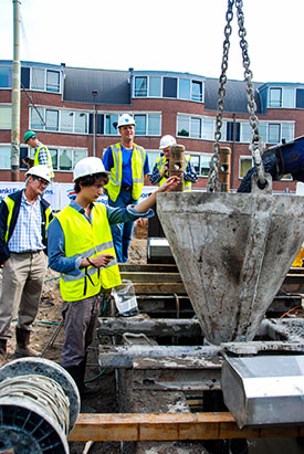 In de bouwkuip van de westelijke tunnelbuis van het project Spoorzone Delft startte woensdag 28 augustus jl. een grootschalige praktijkproef. Onder het toeziend oog van promovendus Jan van Dalen worden hier bewust twee defecte diepwandpanelen gemaakt. Als ze gereed zijn, worden ze stapsgewijs ontgraven en grondig geanalyseerd. De proef – die plaatsvindt als onderdeel van het programma Geo-Impuls – moet kennis opleveren waarmee zwakke plekken in diepwanden voortaan beter zijn te voorkomen.