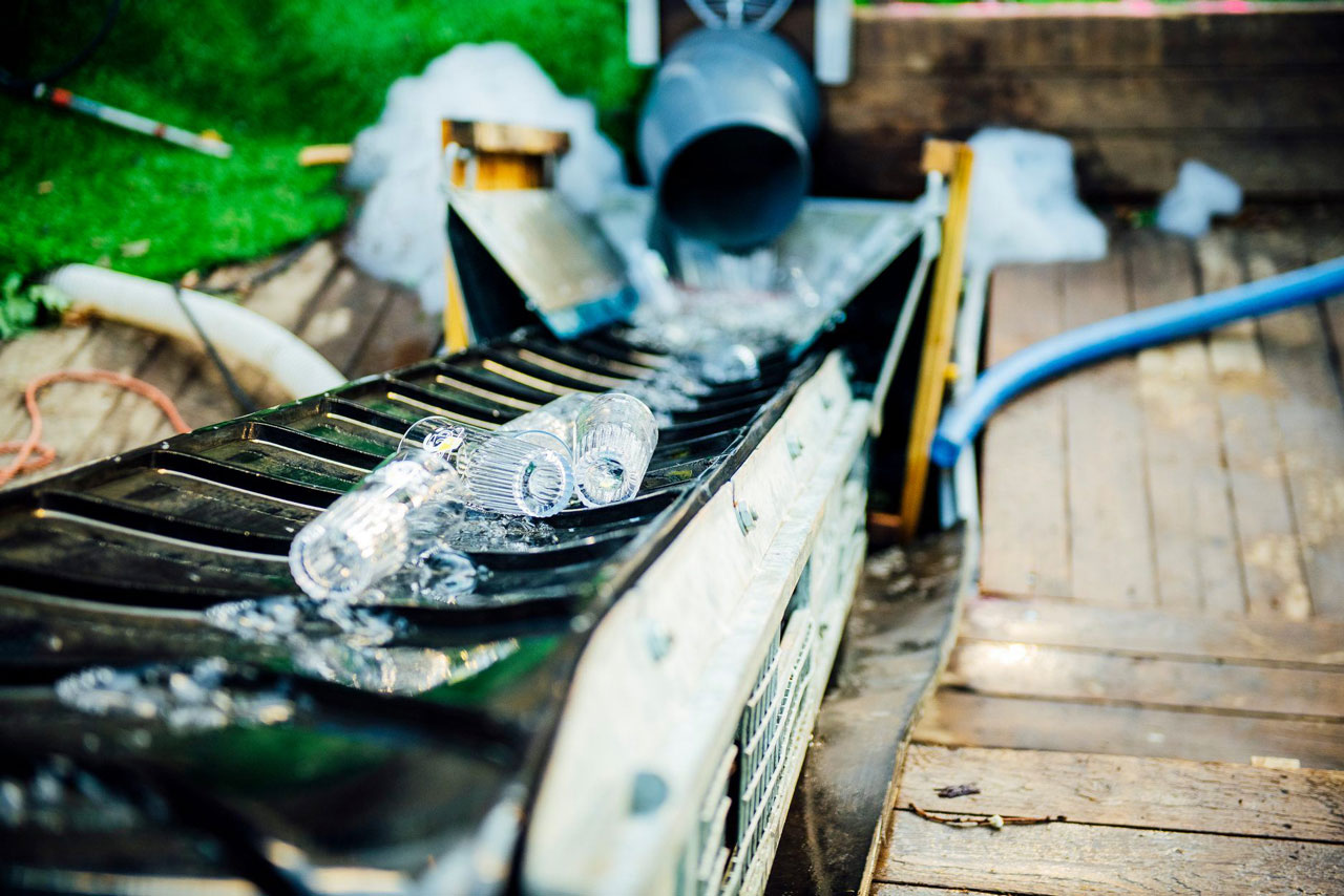 Gladiolen, een jaarlijks muziekfestival in het Belgische Olen, experimenteerde deze zomer met herbruikbare bekers. Hiervoor werd onder meer een ondergronds buizensysteem aangelegd. Bezoekers konden in een kiosk hun beker in de buis gooien, waarna stromend water de beker terugbracht naar de toogtent. Een lopende band transporteerde de bekers vervolgens naar de afwasmachine.