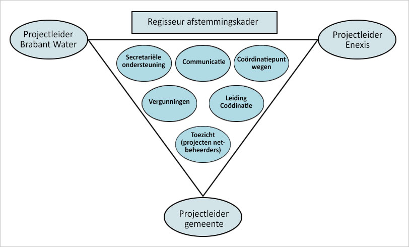 Er is afgesproken om in de uitvoeringsfase eens in de twee à drie weken een vast contactmoment te beleggen waarop de partijen hun projecten doornemen. “Nu moeten projectmanagers van Brabant Water en Enexis nog bij elk gemeentelijk project aanschuiven”, zegt Klessens. “Als we straks centraal werken, scheelt dat enorm veel tijd. Ook de communicatie gaan we centraal doen, ongeacht of het een project is van ons alle drie of van één partij. Zo kunnen we uniform informeren.”