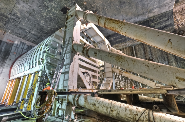 Om het doorboren veilig te laten verlopen is zij opgevangen in een zogenoemd Schild Transfer Systeem (STS). Dit is een reusachtige, drukdichte trommel, die gevuld was met water om tegendruk te geven aan het grondwater. Vervolgens moesten de boorders van aannemer Saturn een waterdichte afsluiting tussen tunnel en station maken, waarna het water uit de STS kon. Nu zijn zij bezig met het verwijderen van de steunconstructie (zie foto) en pas daarna kan het deksel van de trommel af.