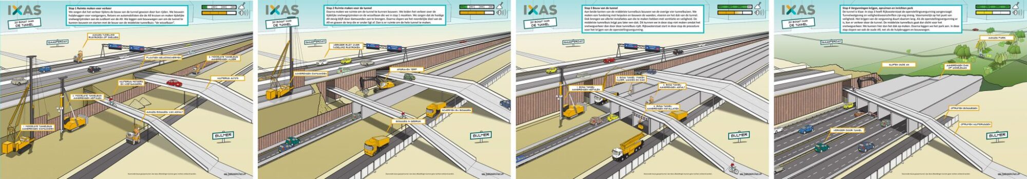 De werkzaamheden zijn in augustus 2015 gestart en de oplevering staat gepland voor eind 2020. In juni 2016 is begonnen met de ruwbouw van de tunnel. Dit duurt ongeveer een jaar. Aangezien bij tunnelprojecten het niet-tijdig functioneren van de tunneltechnische installaties (TTI) het grootste risico is, heeft IXAS ervoor gekozen om de TTI leidend te maken in de planning en organisatie van het bouwproces, en de werkzaamheden op het gebied van de civiele techniek en de grond-, weg- en waterbouw op de TTI te laten volgen.