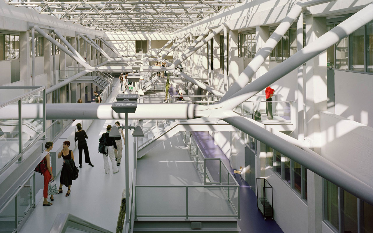 Boven het middendeel van het faculteitsgebouw bevindt zich een grote glazen kap die ervoor zorgt dat er veel daglicht naar binnen valt. Rondom dit atrium liggen de leslokalen, danszalen, repetitieruimten en een theater die via loopbruggen en trappen zijn te bereiken. Het gebouw is met een ondergrondse gang verbonden met het hoofdgebouw. Voor evacuaties zijn er aan de zijkant van het faculteitsgebouw drie trappen die direct naar buiten leiden.