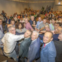 Plenaire gedeelte: onder leiding van Bely Voskamp was op het podium te zien: