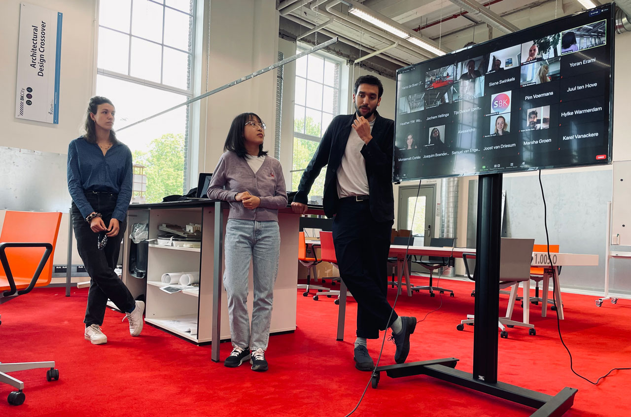 In totaal zijn 23 masterstudenten van de faculteit Bouwkunde van de Technische Universiteit Delft in april gestart met de gecombineerde ontwerpstudio Architecture & Urban Design. Deze multidisciplinaire en internationale groep, met studenten vanuit mastertracks Architecture, Urbanism en Landscape architecture, werkt tot het einde van juni 2021 aan dezelfde cases als de professionele ontwerpteams binnen de ontwerpstudie Stad × Ruimte. In de compacte tijd die beschikbaar is, zullen vier studenten per stad een volledig plan maken binnen (en buiten) de gestelde kaders van deelnemende gemeenten.